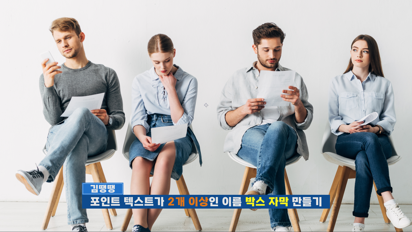 반응형 박스 자막에서 포인트 텍스트 2개 이상 설정하기 영상에서 자막 작업을 할 때 강조하고 싶은 단어나 구절 등을 포인트로 디자인하는 경우가 많이 있습니다. 이번에는 텍스트에 포인트를 주고 싶은 부분이 두 개 이상 있는 경우에 대해 만들어보겠습니다. 지난 시간에 만들어 놓은 컴포지션에 이어서 작업을 진행해도 되고 ctrl+D로 컴포지션을 복제해서 다른 컴포지션으로 만들어서 시작하셔도 됩니다. 포인트 텍스트에…